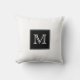 White throw pillow has monogram framed in black square with white pinstripe border. Change sample initial to your own