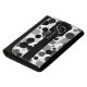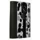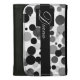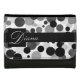 This wallet features a design of black, gray, and white circles behind a bold black center stripe and square. The monogram and text can be completely customized.