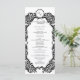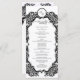 This modern wedding program features a bold black and white frame design with elegant damask flourishes, creating a refined and stylish look. The front highlights all ceremony details in a clean layout, while the back centers the couple’s names inside a decorative frame. Its modern elegance paired with timeless black and white contrast makes it a perfect choice for formal weddings, ensuring both sophistication and memorable presentation.