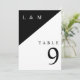 These black and white minimalist, elegant wedding table numbers can be personalized with your information in modern typography. Designed by Thisisnotme©