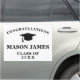 Simple guy graduation car magnet featuring the message, "Congratulations" and a grad cap above the graduate's name and class year in black over a white background. The background may be changed to any color you wish. This classic and elegant car magnet is perfect for a boy graduate and is a great way to show how proud you are to everyone who drives by.