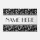 Add your name to this stylish music themed door mat. Features a black and white treble clef and bass clef music pattern.