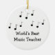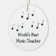 A black and white design featuring black musical notes on a white background. The message says 'world's best music teacher' can be changed if so desired.