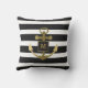 Black and White Nautical Anchor Striped Monogram Throw Pillow