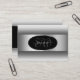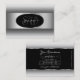Make a lasting impression with this elegant and quality business card design featuring a gray and white color gradient with an elegant oval silver decor frame and border on a black background.