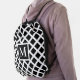 Black and White Optical Illusion Grid Monogram Drawstring Bag