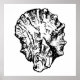 This design was hand-drawn using india ink and bamboo pen. It features a rustic and heavily textured line drawing of a north Atlantic oyster seashell. This seashell is in black and white. The monochromatic colors make this a modern and neutral-toned design. Beach themed subject matter makes it perfect wall art for any beach home or beach-themed room.