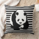 Black and White Panda and Stripes Throw Pillow