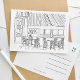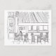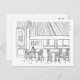 A beautifully illustrated black and white postcard featuring a lovely Paris cafe scene.