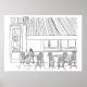 Unique, hand-drawn Paris cafe illustration. Playful art prints for your home!