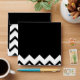 This item features a stylish design in black and white that is partially a monochrome zig zag chevron pattern, and part plain black.
