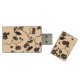 Black and White Pattern Birds on Cherry Blossoms Wood Flash Drive