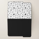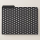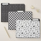 Each of the 3 folders has a different black and white pattern. One is black with white polka dots, another black and white checkerboard and a third white with black and black outlined stars