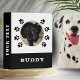 Black and White Paw Print Pet Dog Photo Mini Album. The binder has a photo of a dog and the dog`s name with a black animal paw print pattern. Change or erase the text on the spine. A great keepsake gift, photo album, a scrapbook album, in memory of, notes and more for your dog or pet.