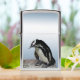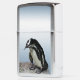 This Zippo Lighter presents an adorable African Penguin standing on a rocky ledge against a sky blue background. Penguins are aquatic, flightless birds whose wings have become flippers. Each has a black stripe and black spots on the chest. The pattern of spots is unique for every bird, just like human fingerprints.