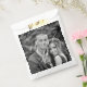 These thank you favor bags have a classic black and white photo of the happy couple. Featuring thank you in elegant white script. To edit the text and change the photo click on the personalize button.