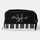 Black and white piano keys toiletry travel bag. Personalized Dopp kit with custom name monogram. Elegant design for piano player, music teacher, pianist, classical music lover etc.