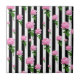 Black And White Pink Rose Flower Stripes Ceramic Tile