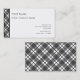 Business cards with a black and white plaid pattern with editable serif letters front and back.