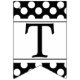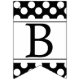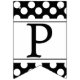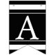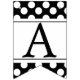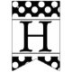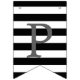 This pretty and elegant bunting flag is perfect for birthday parties, showers, anniversary parties and any other celebration. Three patterns are displayed; one with black and white polka dots and two others with different versions of black and white stripes. You customize the lettering.