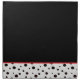 Dinner size napkin is shown in a black and white polka dots border print on bottom edge.
