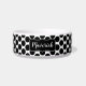 Let your pet eat and drink in bold style with this cute pet bowl! Design features a black and white polka dot pattern, along with a black label where you can personalize with a custom name or phrase.