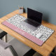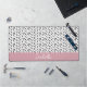 A cute desk mat design which has a black and white polka dot pattern and, at the bottom, there is a dusky pink border where you can customize the white typography with your name.