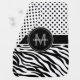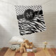A monogrammed black and white square baby blanket featuring polka dots on the top half and zebra stripes on the bottom half of the design. In the center is your baby’s initial and name which is customizable.