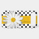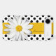 This modern and trendy black and white polka dot pattern iPhone 7 case has a bright golden yellow band on it and a big Shasta Daisy flower, along with template text for you to personalize with your monogram, initials, name or other text. Perfect for the fun loving young woman with a bit of little girl still left in her. If you need assistance, email niteowlstudio@gmail.com.
