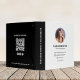 This design features a business, corporate records, filing office supplies, promotional swag, modern simple, professional photos, QR code, and social media, with your logo here, with a black and white design