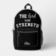 Looking for a stylish and functional Christian backpack? This Black and White Psalm 28:7 'The Lord is My Strength' Printed Backpack is perfect for students, moms, and women on the go. Featuring a modern black-and-white design with the Bible verse 'The Lord is My Strength' in bold collegiate and elegant script fonts, this backpack offers a powerful reminder of faith wherever you go. Personalize the front pocket with your name, last name, or custom text for a unique touch. Ideal for Christian students, busy moms seeking a faith-inspired diaper bag, or women who need a gym backpack with inspirational Bible verses. Stay organized and inspired with this personalized Christian backpack, perfect for daily use. Carry your faith with you—whether it's to school, the gym, or on-the-go!