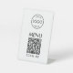 It has just the logo in the upper part and the QR code of the menu in the lower part, with the word Menu above it and the message "Scan Me" under it. The text and the logo are black, the background is white, the QR code is black and white.