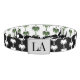 Black and white reversible belt with palm trees. Personalized belt with custom name initial monogram on the buckle. Modern custom color belts for men and women. Match colors to any outfit. Double sided print with palm tree pattern. Cool Birthday gift idea for friends and family.