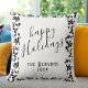 Black and White Rococo Happy Holidays Script Throw Pillow