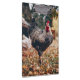 Featuring a large black and white rooster hanging around the farm with his two white hen friends. Nothing like scrounging around for some bugs on a cool autumn day with colorful leaves cascading down to the ground in an amazing display.
