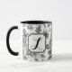 Black and White Rose Pattern Mug. Customizable Initial Black and White Rose Pattern Mug.