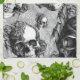 Black and white rose skull pattern, hand drawn. kitchen towel