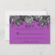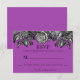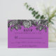 These easy-to-personalize wedding invitation RSVP cards have a bold distinctive style. They feature a striking antique engraving style illustration of roses in black and white, with bold black lettering all set against a bright electric purple colored background.