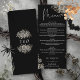 This elegant black and white floral gothic wedding menu can be personalized with your information in chic typography with your monogram initials on the reverse. Designed by Thisisnotme©