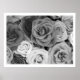 Black and white roses pattern large poster. 53 by 40 inch maximum size. Smaller proportional sizes available.