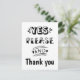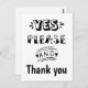 Yes please and thank you - fun, quirky and unique typography black and white RSVP budget card, which you can use for any occasion = birthday RSVP, wedding RSVP, or any party acceptance.