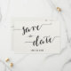 Black and white calligraphy Save The Date invitation cards with customizable text