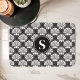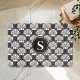 This chic bath mat features a repeating pattern of seashells in a striking black and white palette, perfect for adding a touch of coastal style to your bathroom. Personalize it with your initial in a contrasting circle for a modern and elegant look. The graphic design provides a bold visual statement, while the classic motif complements a variety of bathroom decor styles.