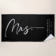 This elegant black and white "Mrs." beach towel showcases a beautiful flowy script, personalized with her last name and wedding year. It's the perfect gift for newlyweds, adding a touch of romance and style to their beach getaway. Ideal for relaxing under the sun or celebrating their new chapter together, this towel is a thoughtful keepsake they'll cherish during every vacation!