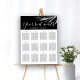 Elegant Wedding Seating Charts - features silver leaves on the black background and handwritten script.