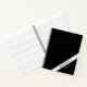 Black and white simple personalized notebook with custom printed name and subject or title written on a diagonal stripe in the lower corner of the front cover in a cute trendy handwriting script font that has modern farmhouse style perfect for those who prefer a more minimalist and understated, but unique look. You can pick the type of paper for the inside - from wide or college ruled, to blank or graph pages, even elementary school practice writing lines or recipe page templates! Add your own custom title and order one for each school subject or use around the house for various notes and memories and gratitude journaling. The cover color can be changed on each version you order, just click 'customize further' to pick a new background color or fonts.