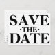 Black and white simple typography wedding Save the Date postcard. It features the phrase"Save the Date" in black and white bold typography. On the back there is your wording and a geometric border.