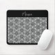 Black and white elegance, Snowflake Flower Pattern with a black frame that makes it possible to personalize the mouse pad with a name. Thanks to the easy-to-use text template function you can add your own name (or text) instead of the name shown in the example.
