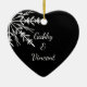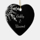Customize the festive Black and White Snowflake Winter Wedding Heart Shaped Ornament with the personal names of the bride and groom and December, January or February marriage ceremony date to create a unique save the date, party favor or keepsake gift. This one of a kind elegant Christmas ornament features an intricate white snowflake design on a black background.