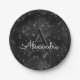 Black and White Faux Shimmer and Sparkle Elegant Birthday or Bachelorette Party Plates. These Black and White Birthday Party Plates can be customized to include your initial and first name.